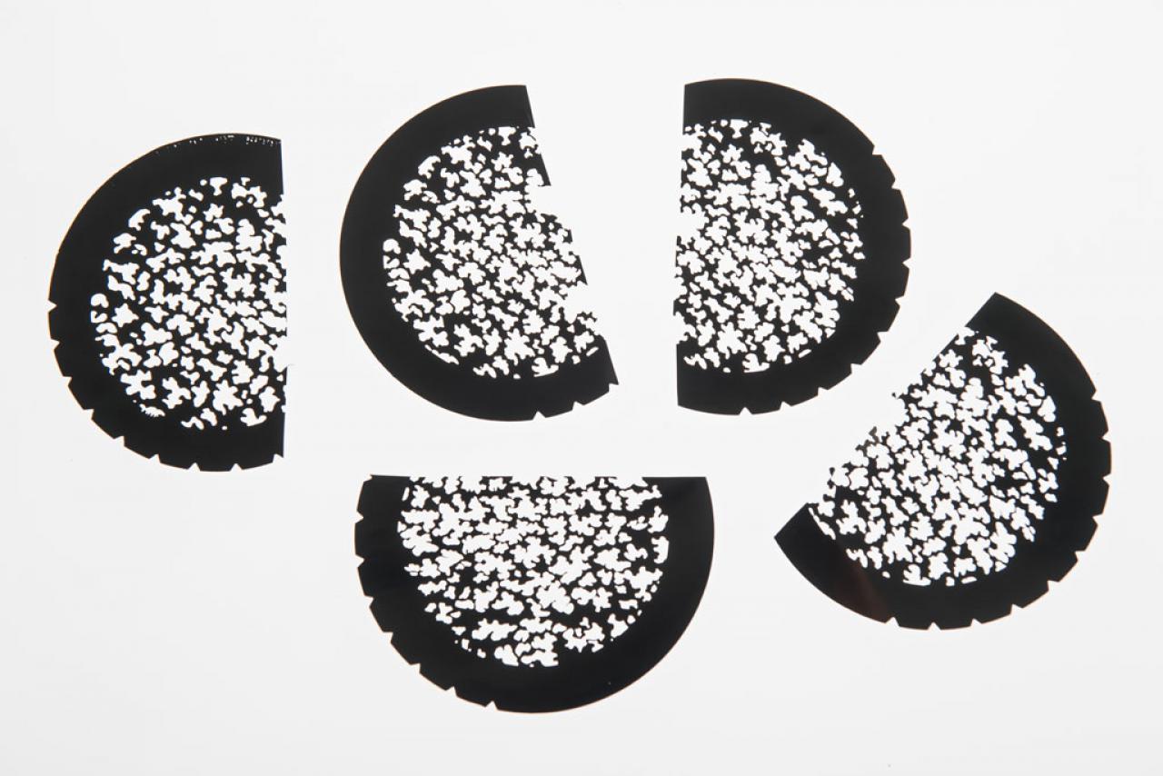 Disque métallique sur lequel est découpé un motif, le gobo se place devant l’ampoule du projecteur pour représenter une image lumineuse à partir de ce motif.
