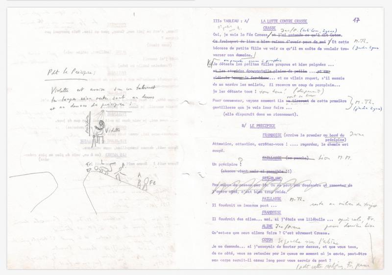 Exemplaire annoté de Nicole Chevallier, metteur en scène, auteur des effets spéciaux